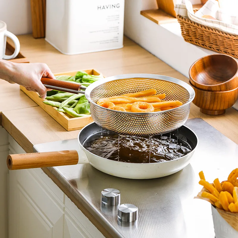 Our wholesale stainless steel mesh strainers are ideal for both professional and home kitchens, combining strength, safety, and efficiency. These mesh strainers are perfect for deep frying, blanching, boiling, and rinsing ingredients. They are a reliable choice for restaurants, retailers, and kitchenware brands. Bulk orders are welcome.