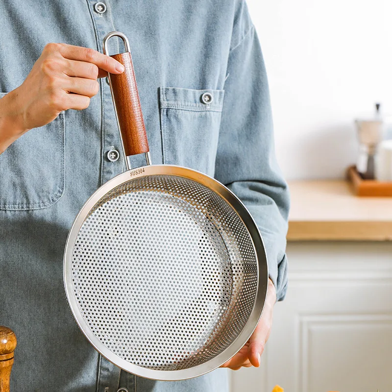 Ergonomic Design: Features a long, sturdy wooden handle for a comfortable, non-slip grip and protects hands from heat transfer when handling hot oil or steam.