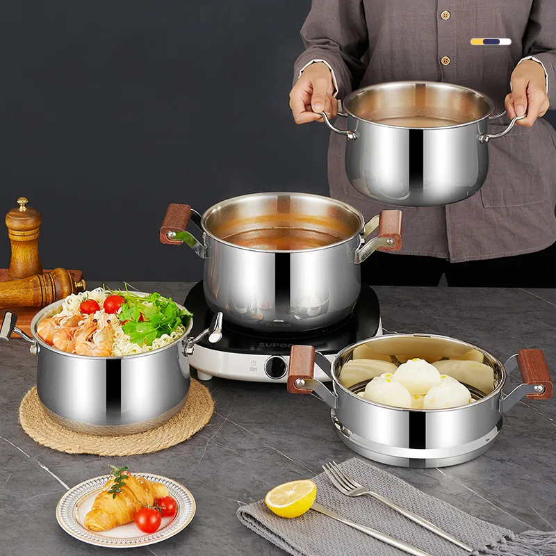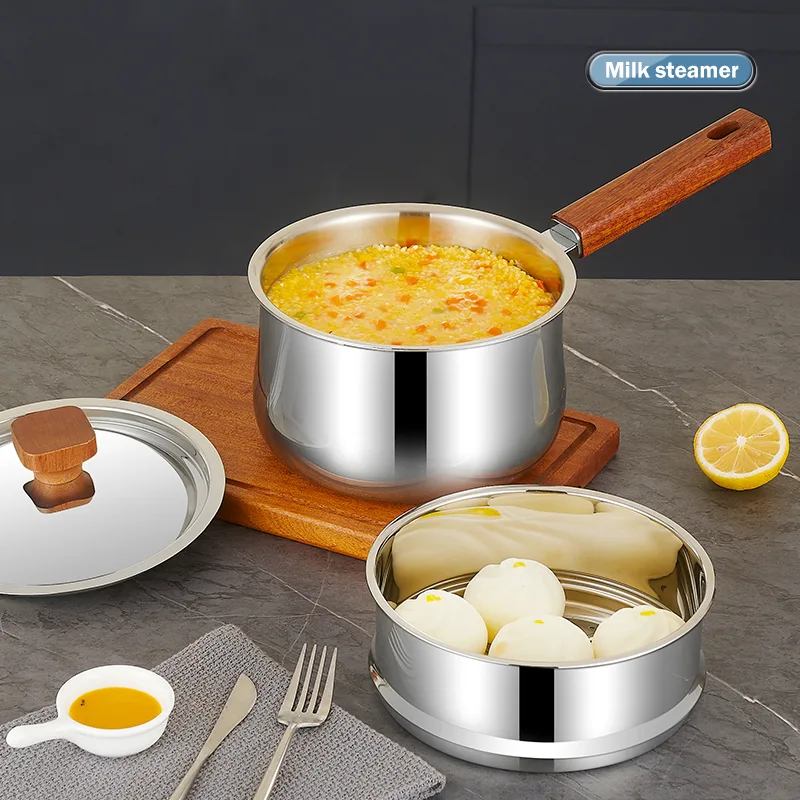 Maximize efficiency in any kitchen with our wholesale dual-layer stainless steel steamer pot. The bottom pot is ideal for boiling soups, stews, or pasta, while the upper tier uses natural steam to gently cook dumplings, vegetables, and seafood.