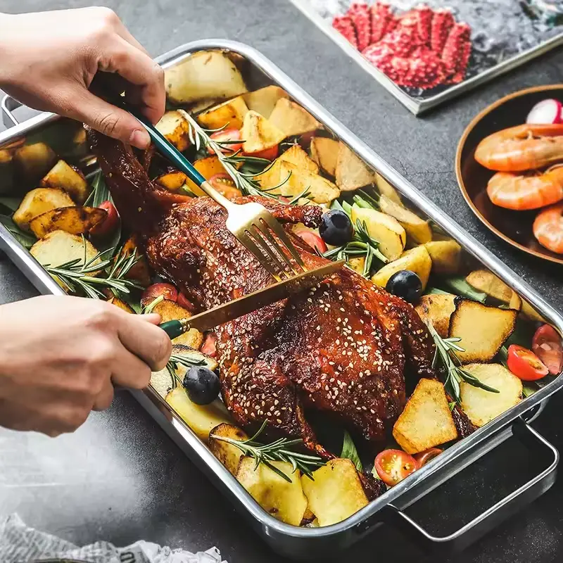 Thickened Design: The Baking Pans adopt a thickened structure with strong load-bearing capacity and high strength. It can accommodate more food and effectively prevent warping and deformation at high temperatures.