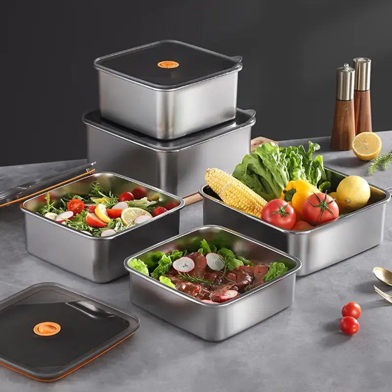 - Food-Grade Stainless Steel (SS304): Made from durable, non-toxic, corrosion-resistant materials, this custom stainless steel food storage container is ideal for acidic, perishable, or daily meal storage.